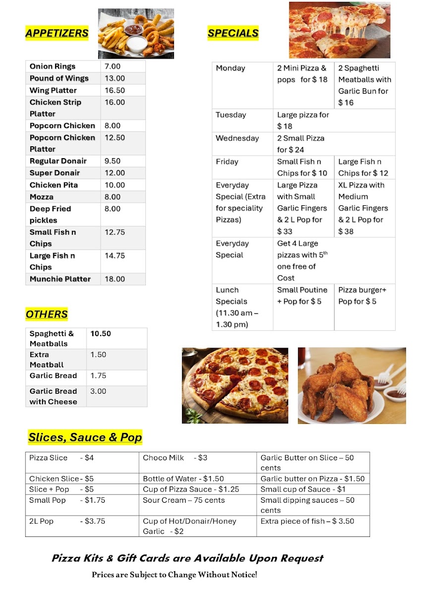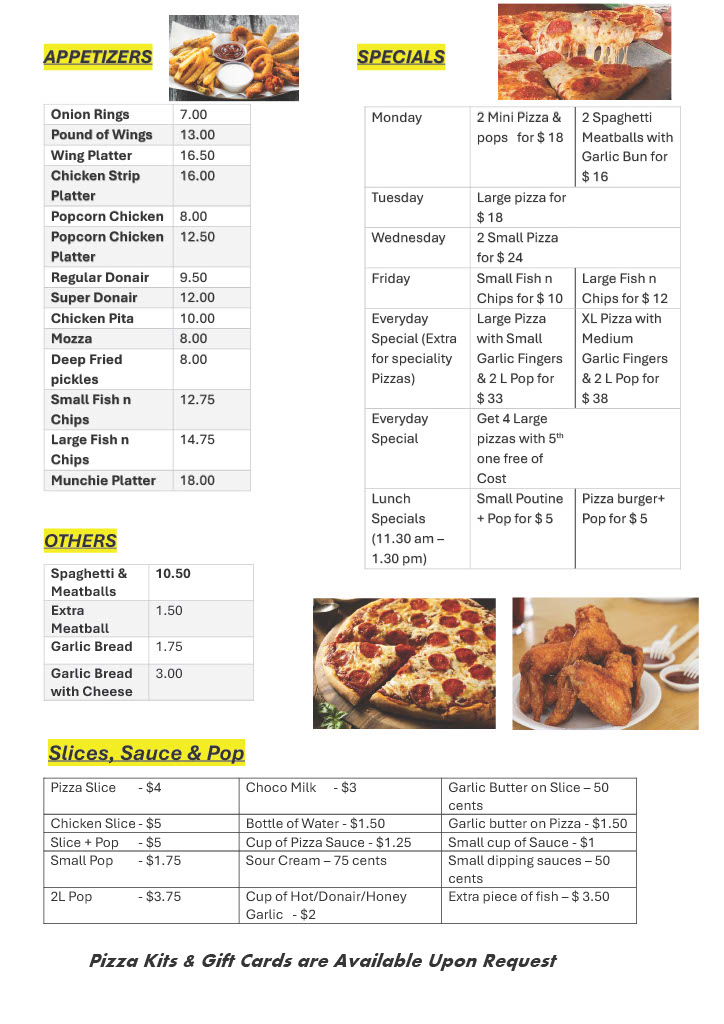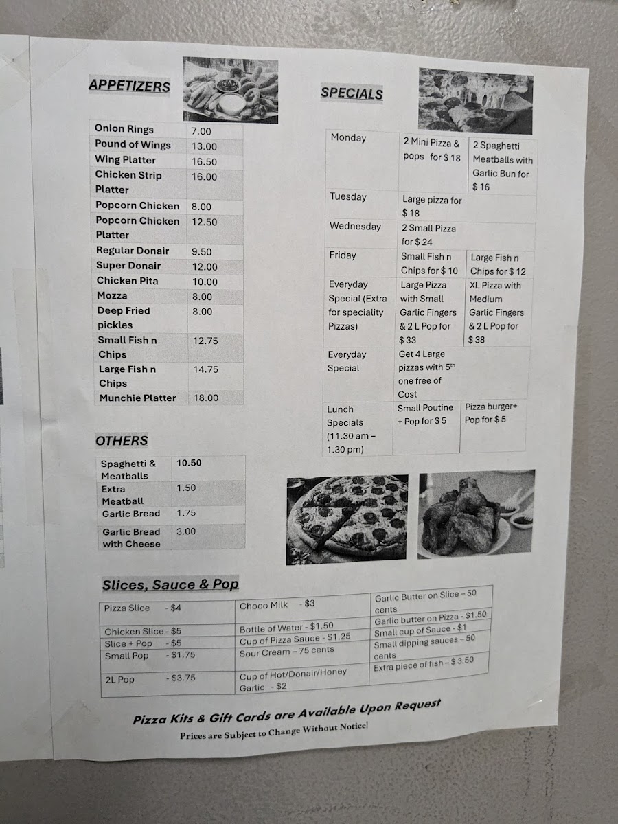 Whether you’re stopping by for a hearty slice like the Pep and Cheese or craving something a bit more filling such as the Donair Sub, the food complements the laid-back atmosphere. Alongside the pizzas and subs, there’s a selection of warming drinks and light accompaniments like garlic fingers and savory sauces that pair well with the main dishes, making it easy to enjoy a well-rounded meal without fuss.
